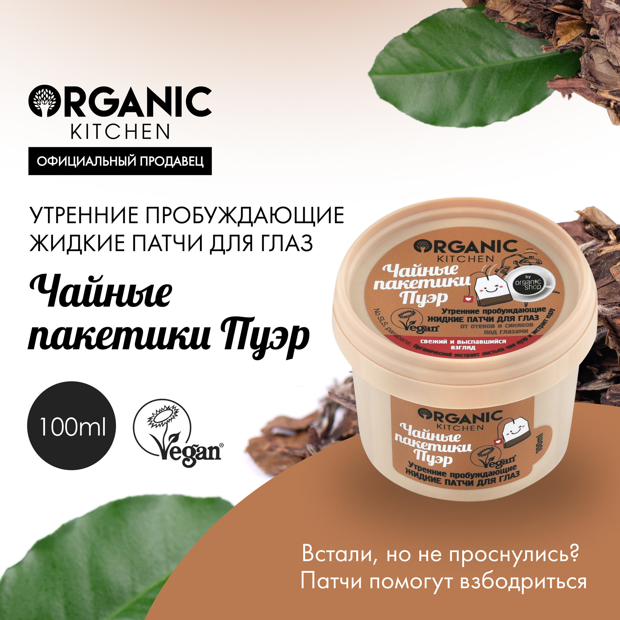 Organic Kitchen маска-патчи для глаз Чайные пакетики пуэр Жидкие утренние пробуждающие 100 интересное: