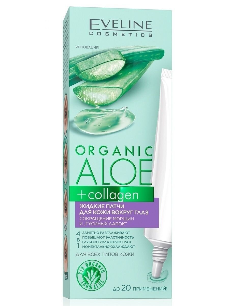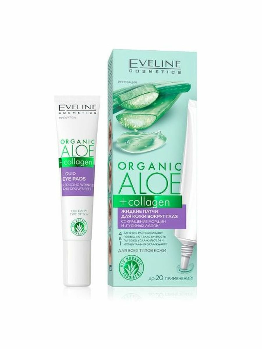Жидкие патчи для кожи вокруг глаз EVELINE ORGANIC Алое + Коллаген (от темных кругов и отеков) 20 мл интересное: