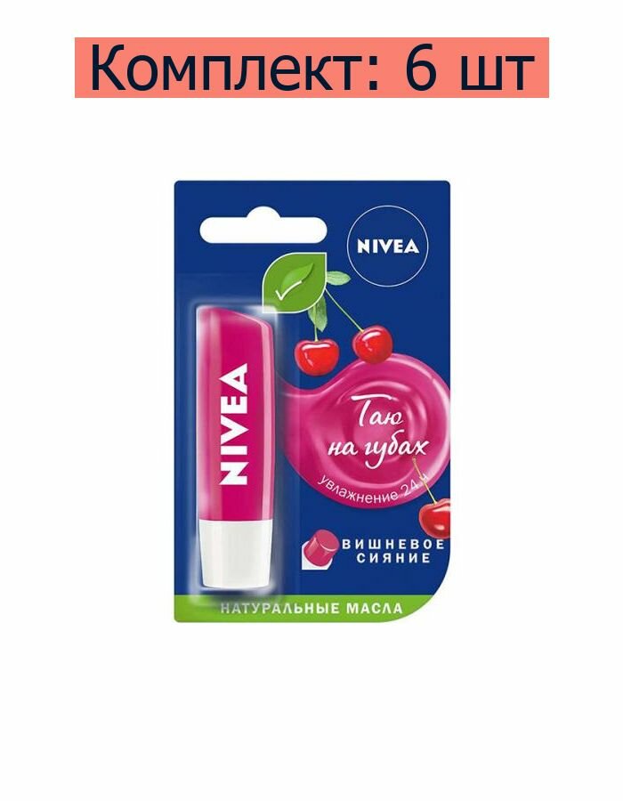 Nivea Бальзам для губ Вишневое сияние, 4,8 г, 6 шт