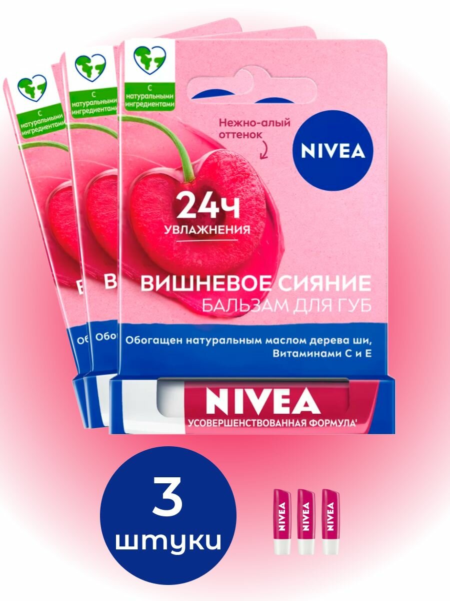 Купить Nivea Бальзам для губ Вишневое сияние, 4,8 г, 3 шт /