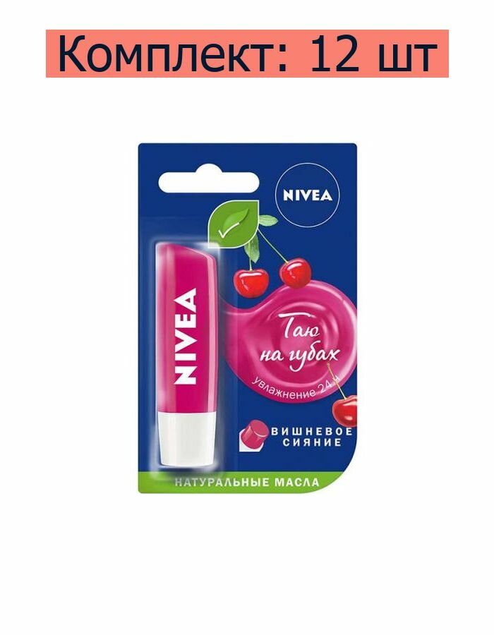 Nivea Бальзам для губ Вишневое сияние, 4,8 г, 12 шт