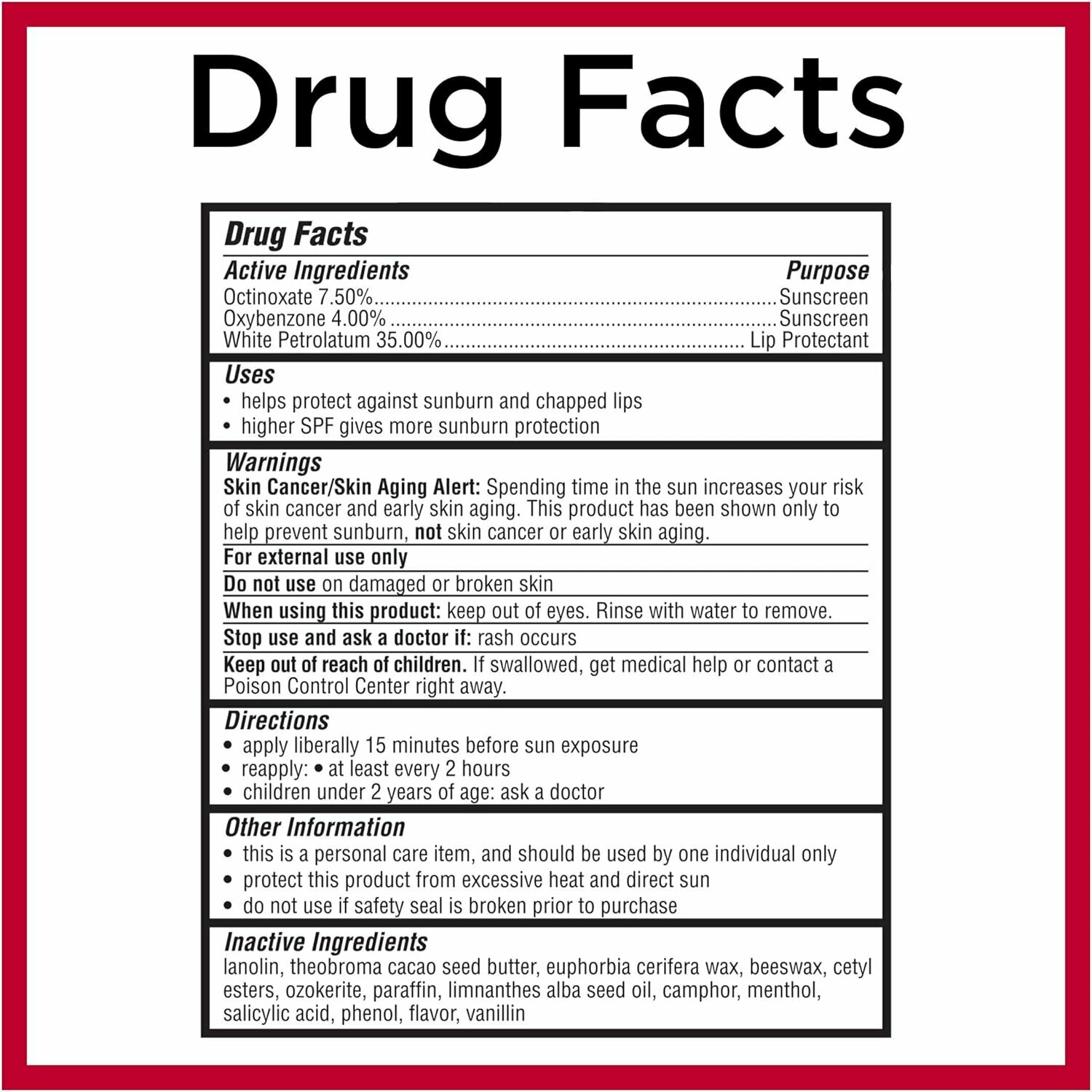 | Состав | Активные ингредиенты: Белый вазелин 41,25%, Неактивные Ингредиенты: ланолин, масло семян какао теобромы, воск молочая цериферного, пчелиный воск, цетиловые эфиры, озокерит, парафин, масло семян лимнантеса альба, камфора, ментол, салициловая кислота, фенол, ароматизатор, ванилин |