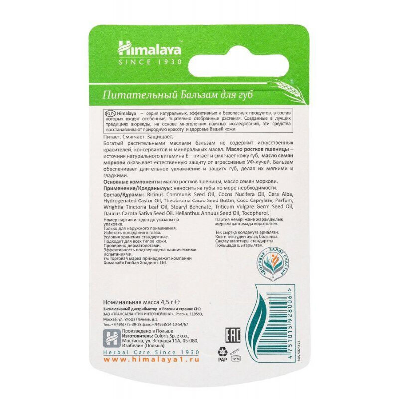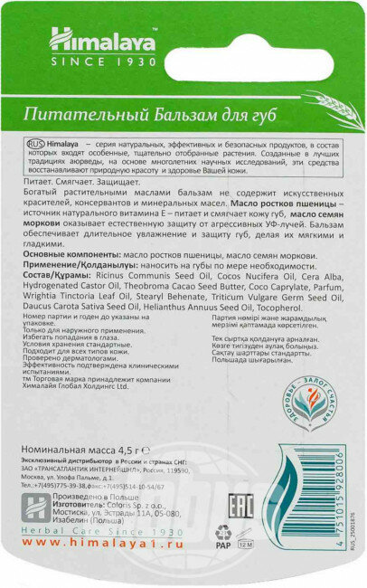 HIMALAYA,Бальзам питательный для губ, Himalaya since 1930, 4,5 г