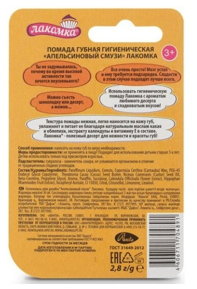 Помада губная гигиеническая Лакомка Апельсиновый смузи 2,8 гр. х 6 шт.