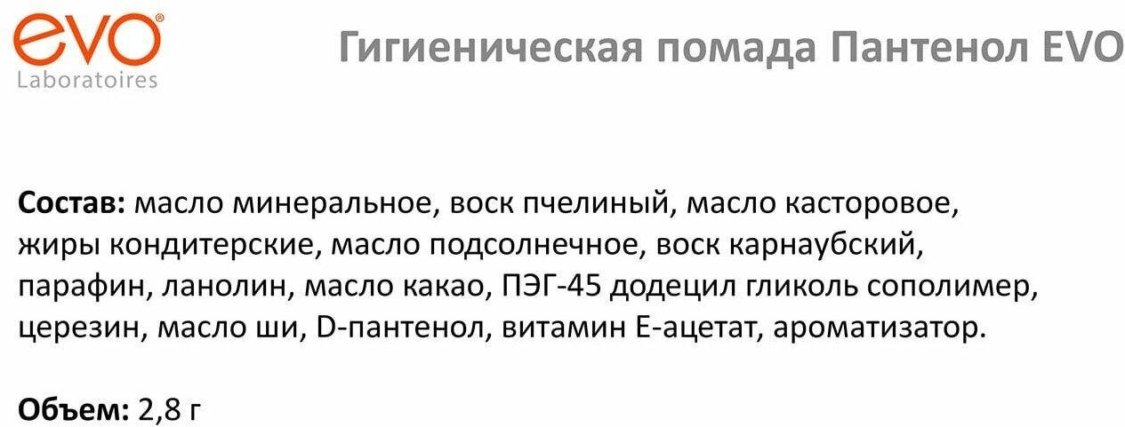Губная помада гигиеническая EVO "Пантенол", 2,8 г