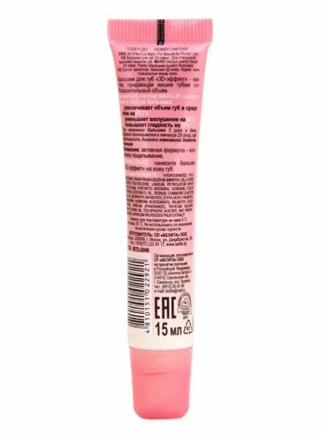 | Способ применения | нанесите бальзам 3D-эффект на кожу губ |