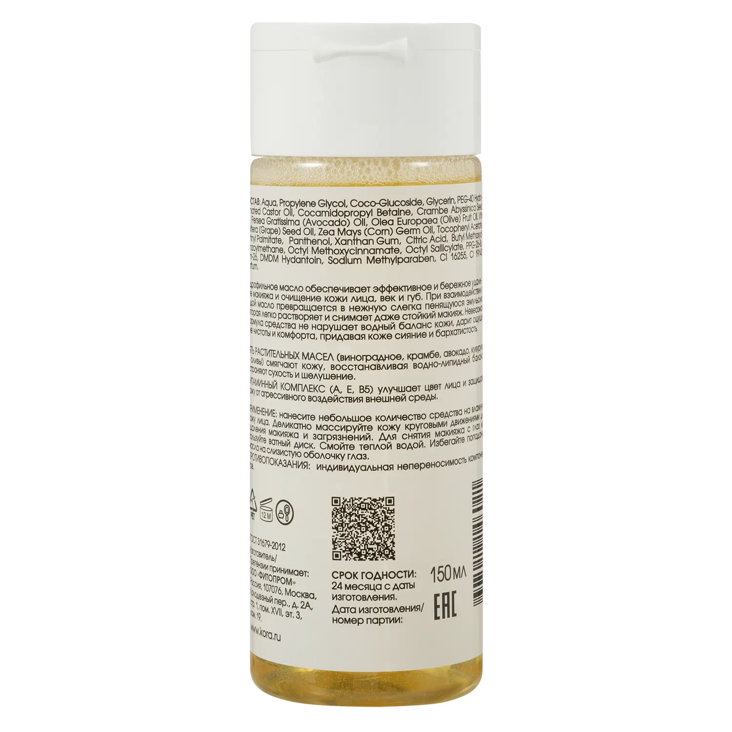 Гидрофильное масло для сухой и возрастной кожи. Очищение+Уход, 150 мл, Kora