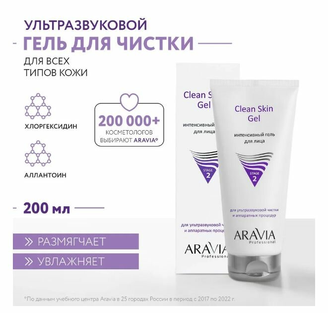ARAVIA Гель интенсивный для ультразвуковой чистки лица и аппаратных процедур Clean Skin Gel, 200 мл