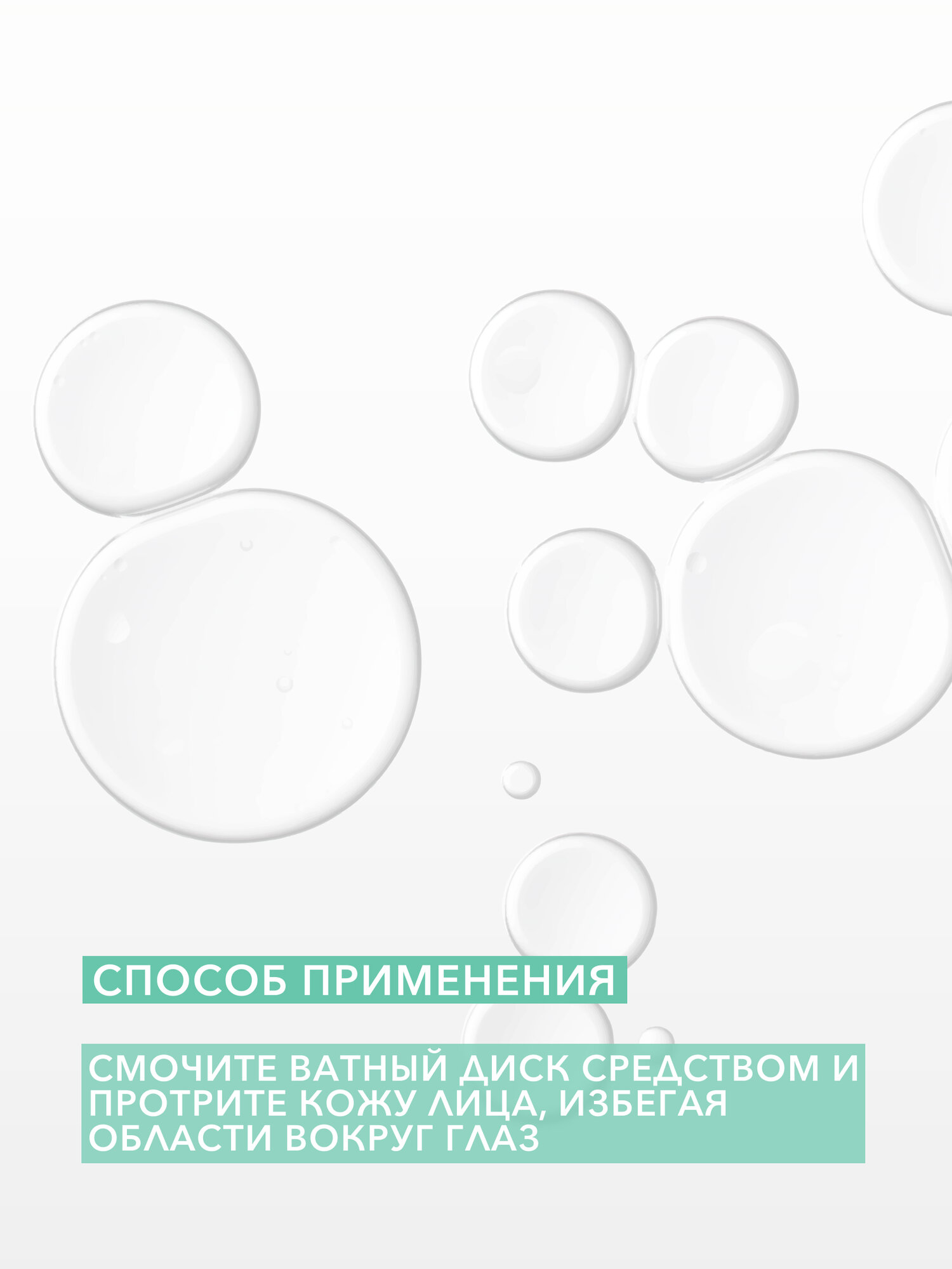 смочите ватный диск средством и протрите кожу лица, избегая области вокруг глаз. Используйте ежедневно утром и вечером или на протяжении дня.