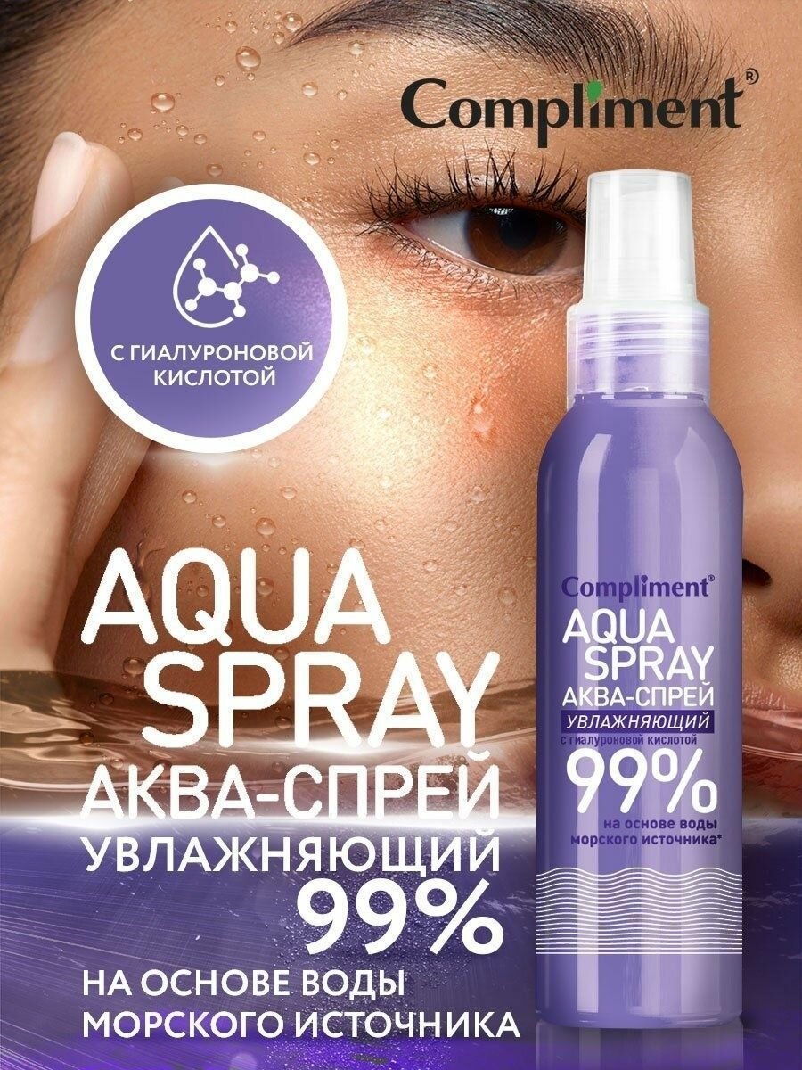 Купить Спрей для лица Compliment Увлажняющий с гиалуроновой кислотой, 200 мл