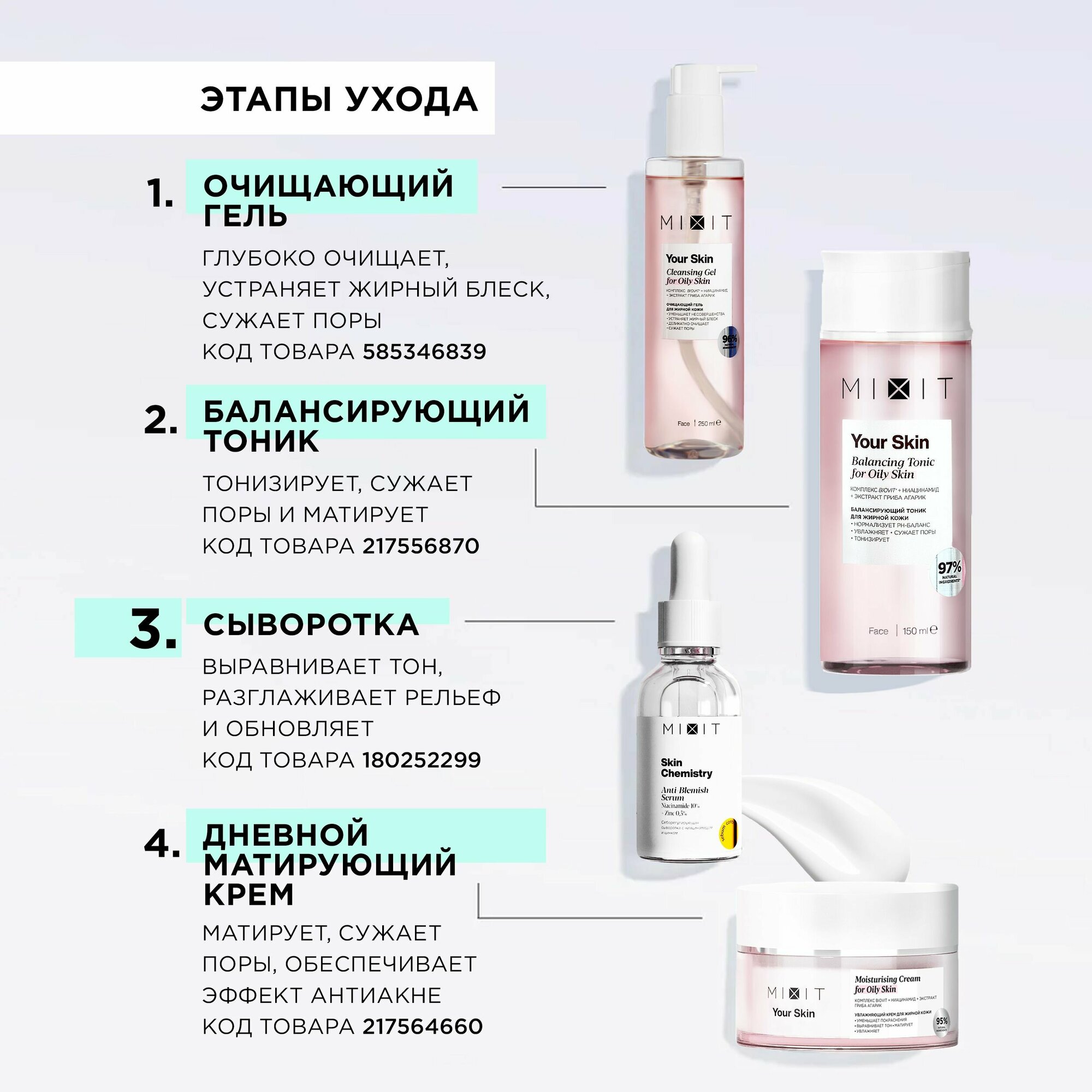 MIXIT Cеборегулирующая сыворотка для лица с ниацинамидом и пенка-мусс очищающая для умывания