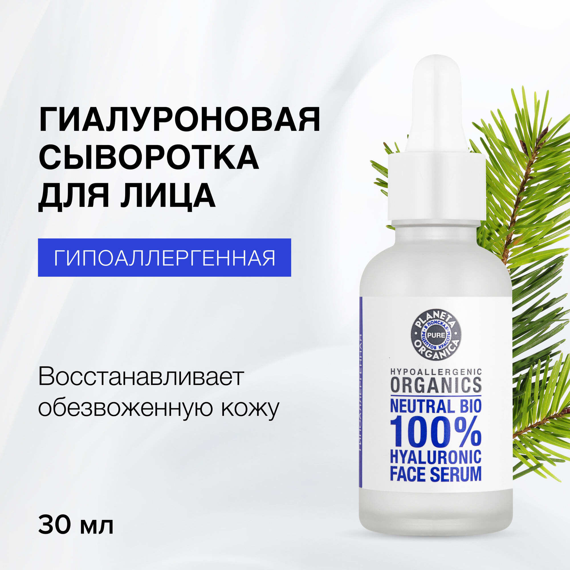 Гиалуроновая сыворотка Planeta Organica Pure гипоаллергенная для лица, 30 мл