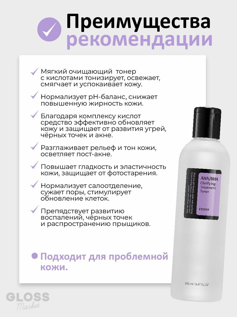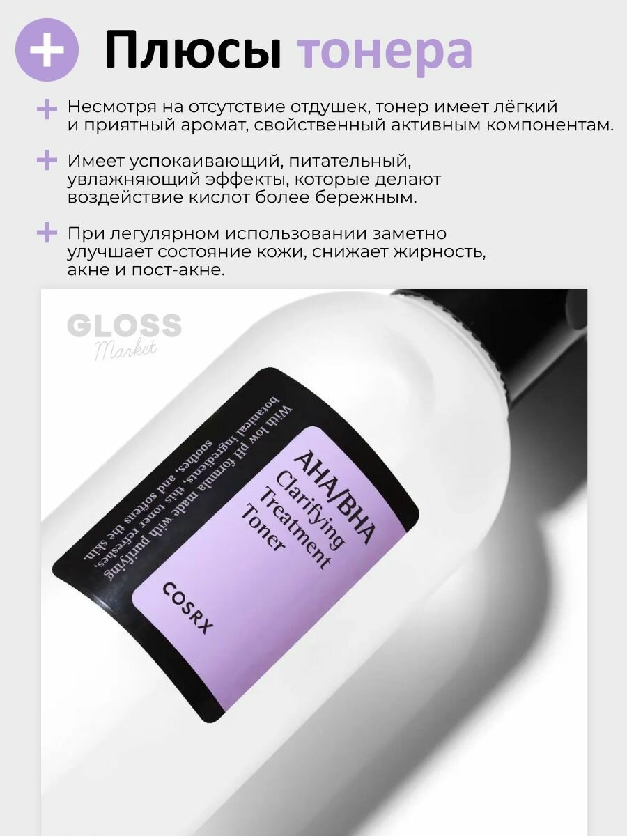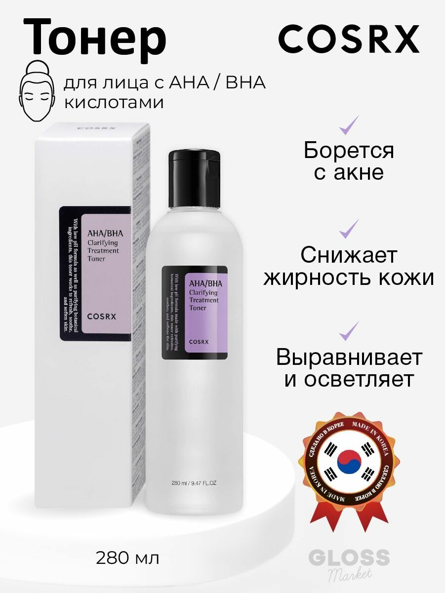 COSRX Мягкий очищающий тонер спрей с кислотами AHA/BHA Clarifying Treatment Toner 280 мл интересное: