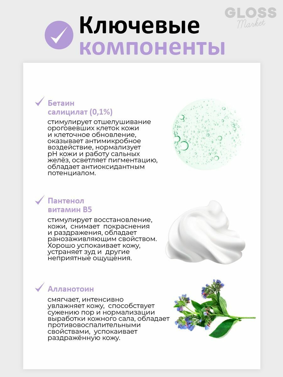 | Особенности | антиоксидантное / гипоаллергенное / не тестируется на животных / подходит для ежедневного использования |