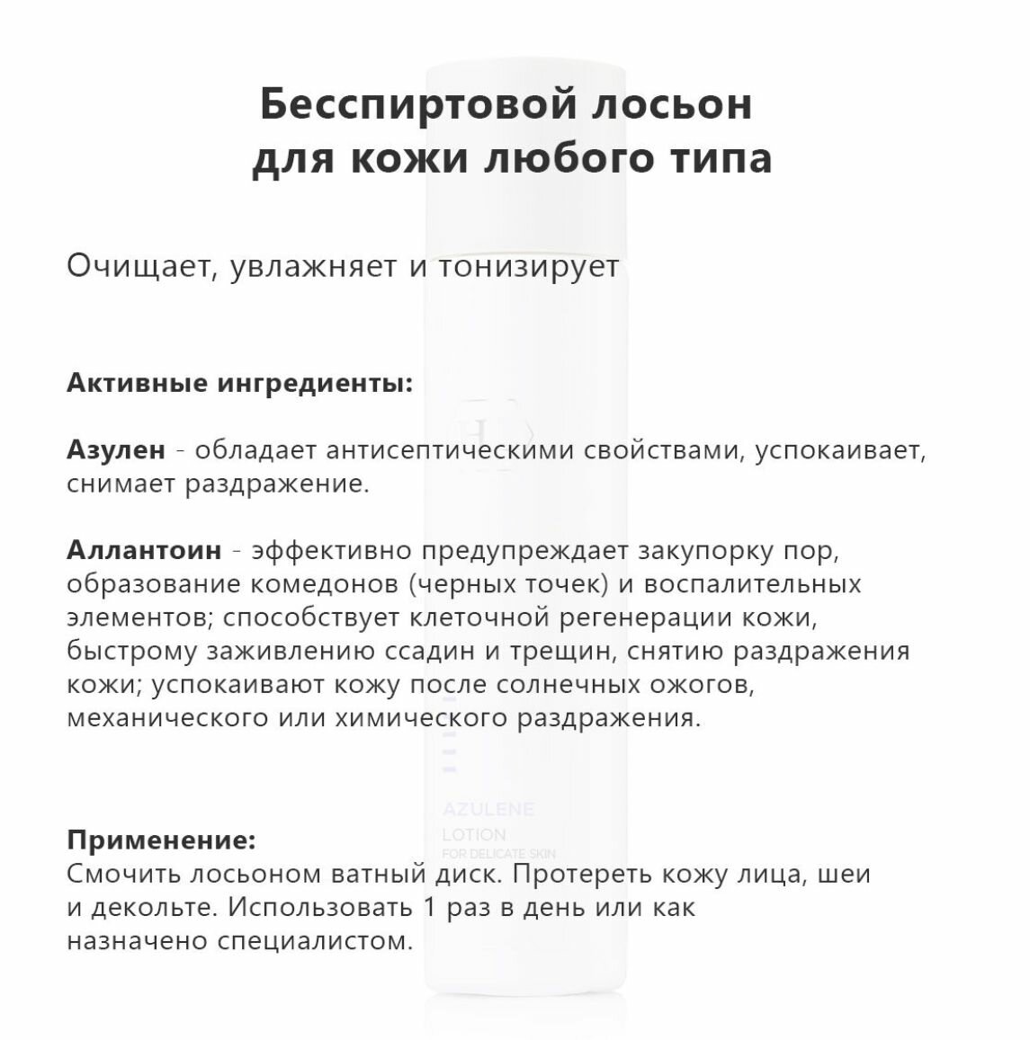 Увлажняющий очищающий лосьон для лица Holy Land Azulene Lotion интересное: