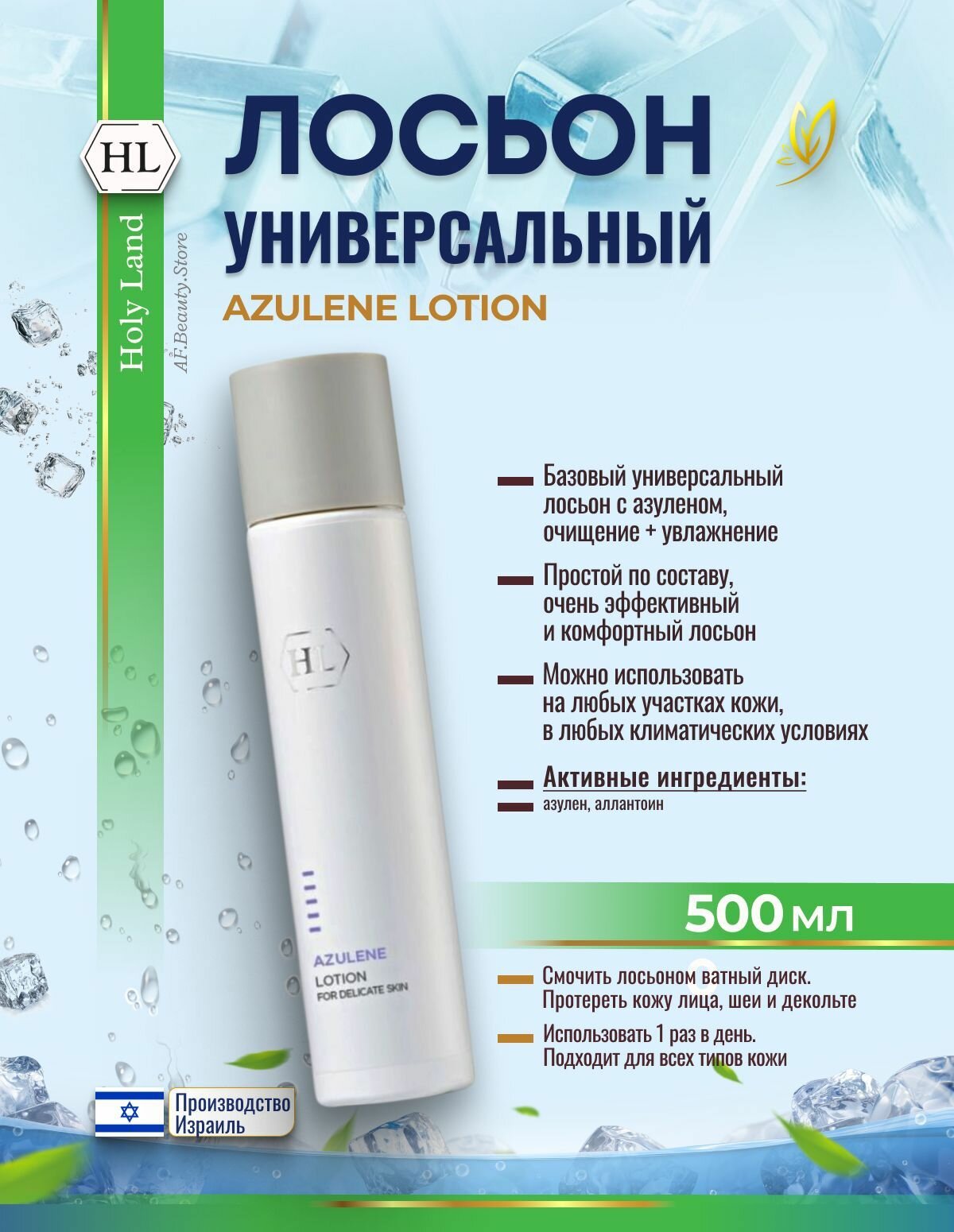 СохранитьHoly Land AZULENE Lotion (Бесспиртовой увлажняющий лосьон для кожи любого типа), 500 мл интересное: