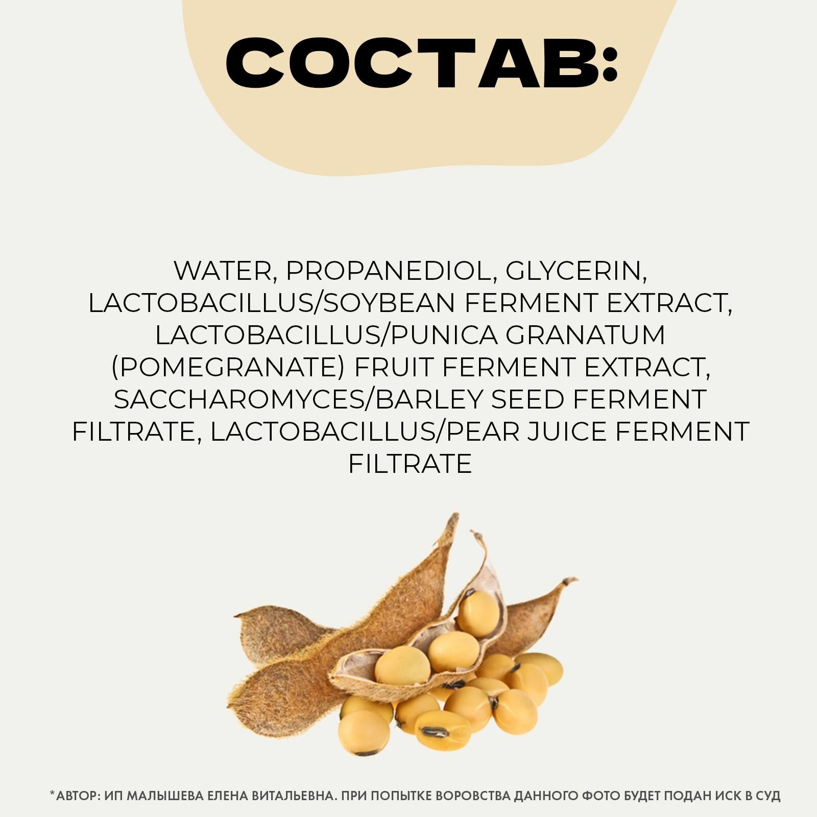 | Состав | WATER/AQUA, PROPANEDIOL, GLYCERIN, LACTOBACILLUS/SOYBEAN FERMENT EXTRACT, LACTOBACILLUS/PUNICA GRANATUM FRUIT FERMENT EXTRACT, SACCHAROMYCES/BARLEY SEED FERMENT FILTRATE, LACTOBACILLUS/PEAR JUICE FERMENT FILTRATE |
