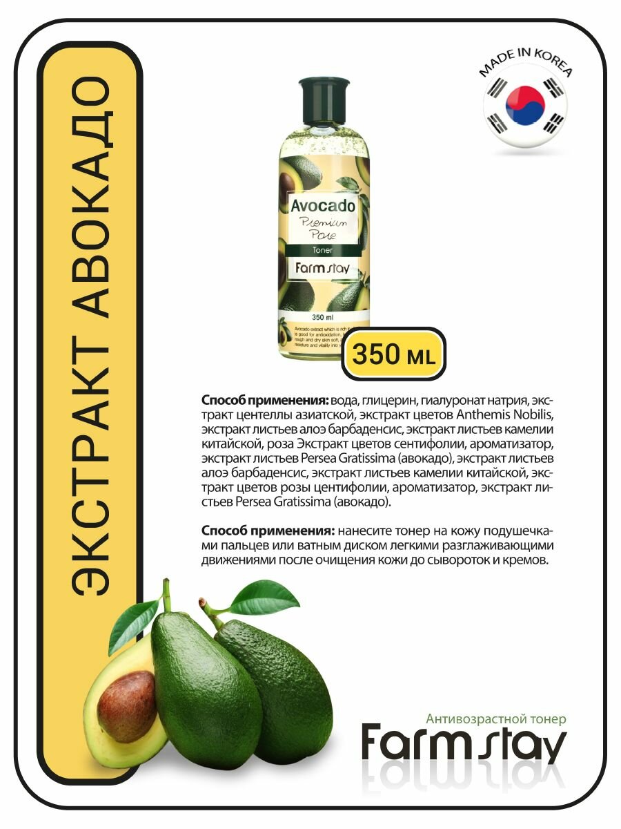 Тоник FarmStay Avocado Premium Pore Toner, 350 мл