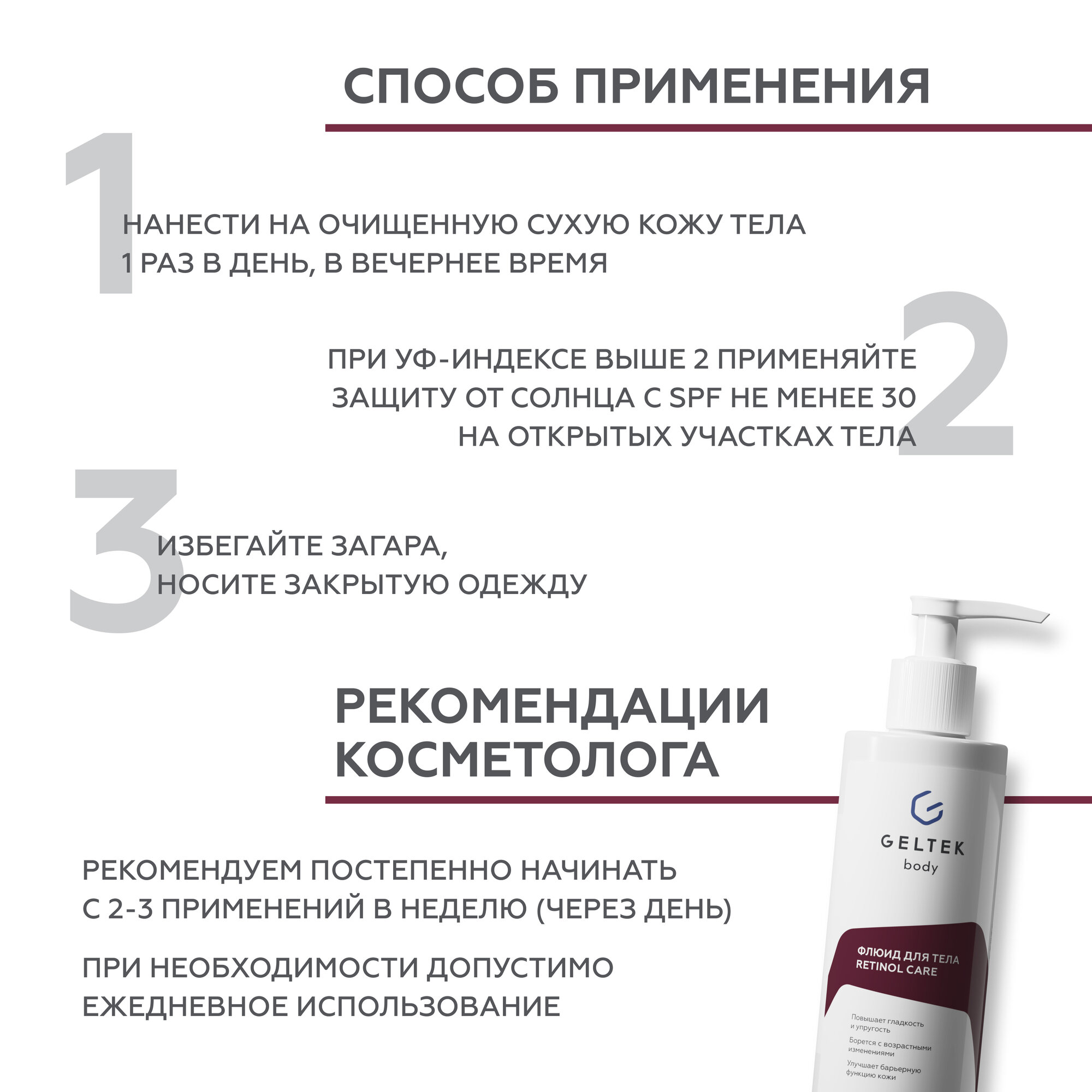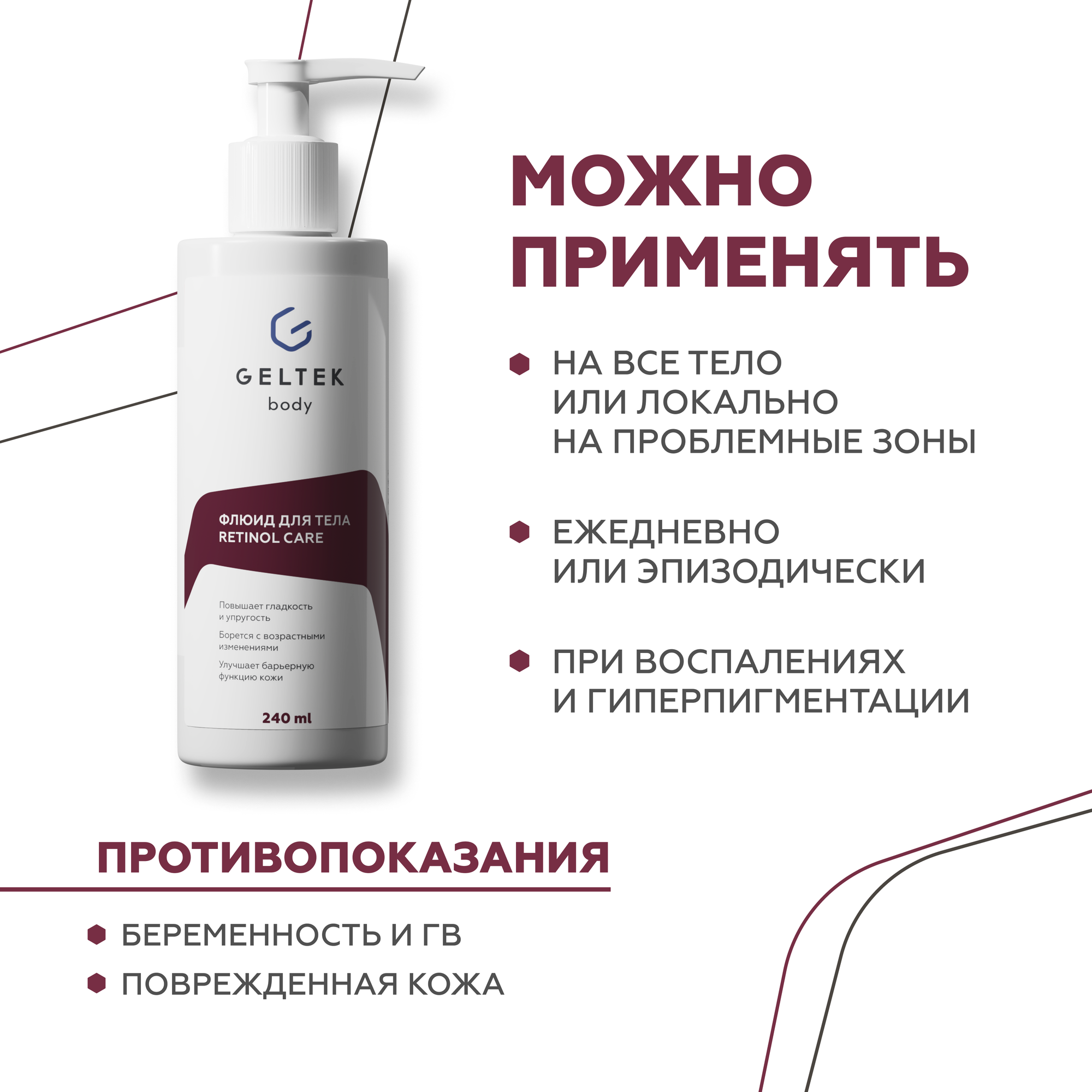 Гельтек Крем флюид для тела Retinol Care с ретинолом, от морщин, пигментных пятен и акне, 240 мл интересное: