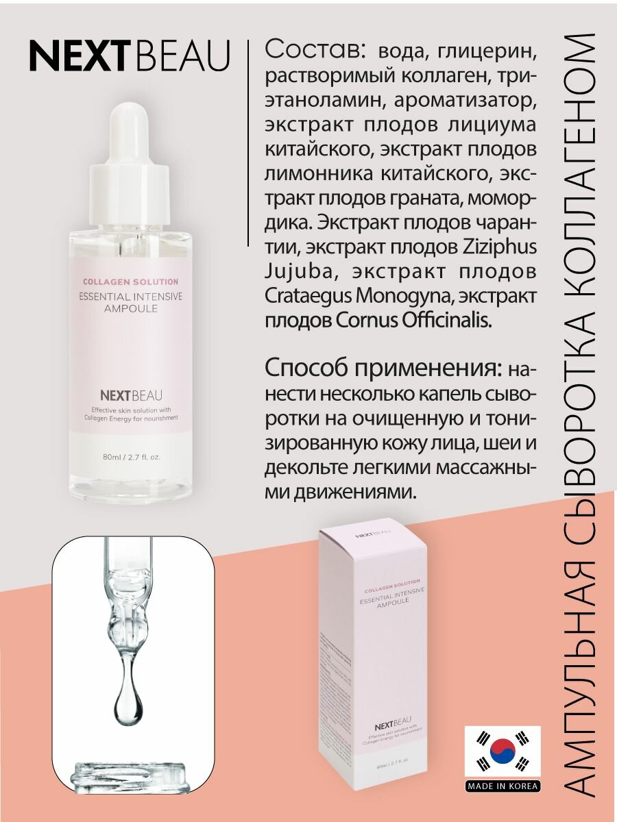 NEXTBEAU Collagen Solution Essential Intensive Ampoule Ультраомолаживающая ампульная сыворотка с гидролизованным коллагеном 80мл интересное: