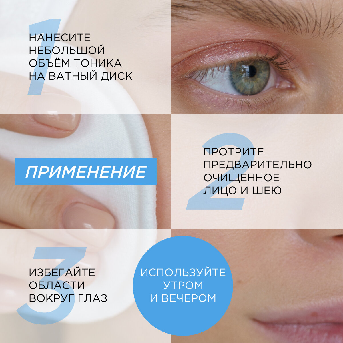 | Способ применения | Небольшое количество тоника нанести на ватный диск и с его помощью протереть предварительно очищенное лицо и шею, избегая области вокруг глаз. Рекомендуется использовать утром и вечером. Подходит для ежедневного ухода. |