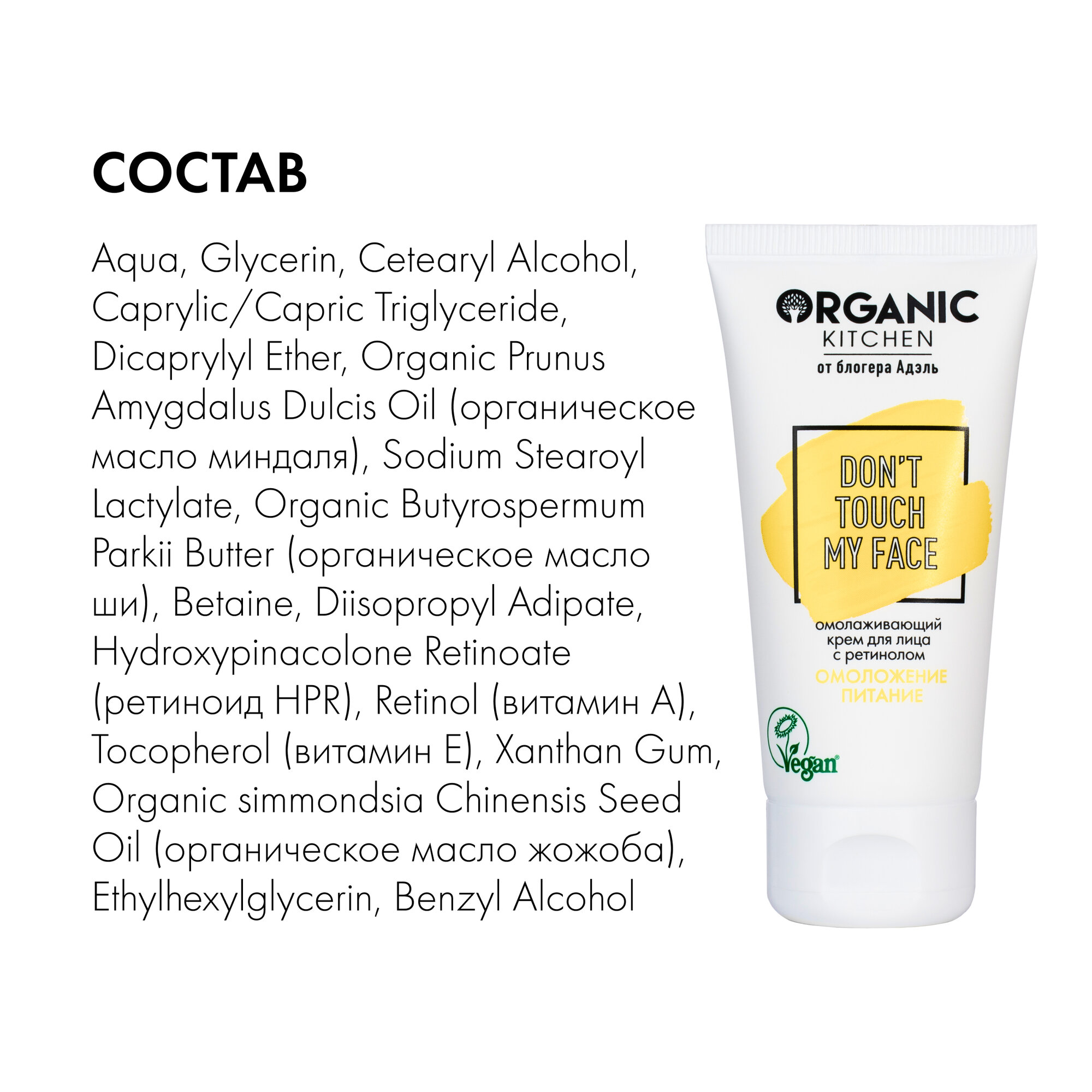 Крем для лица с ретинолом Омолаживающий "Don't Touch my Face" от блогера Адэль @adeliamft Organic Kitchen Bloggers, 50 мл