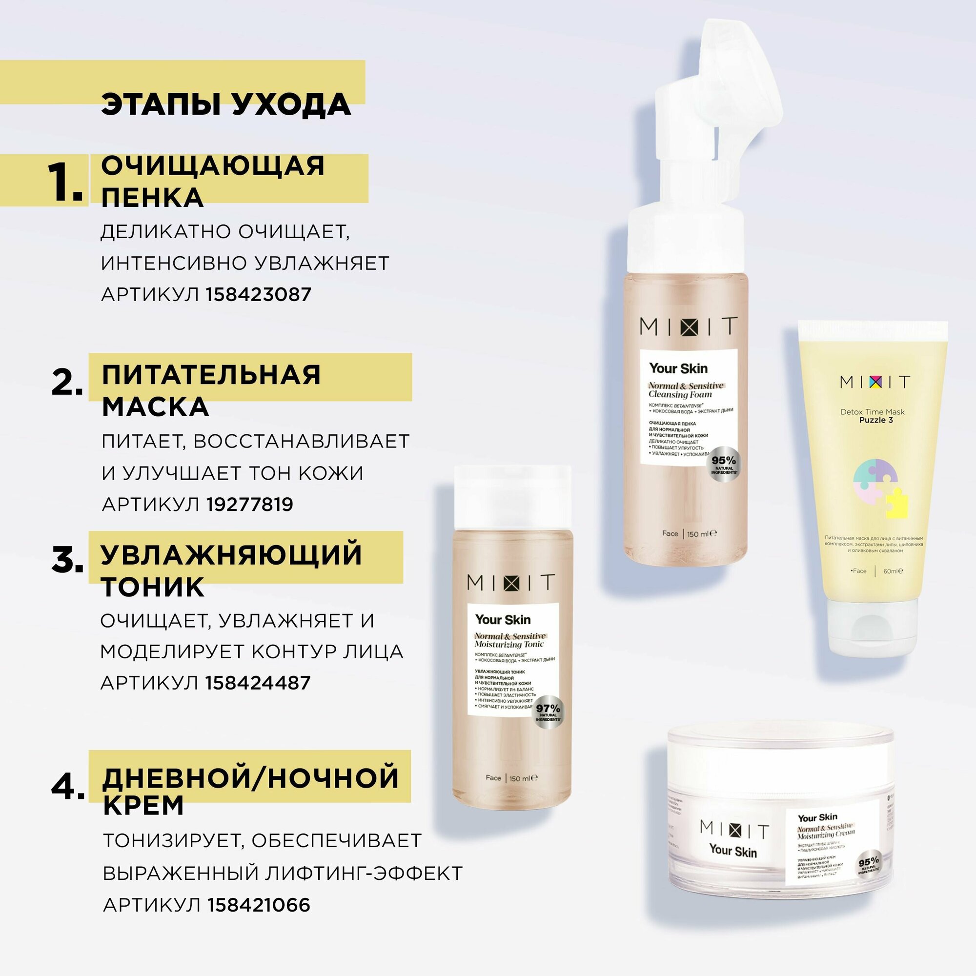 | Потребности кожи | акне / проблемная / чувствительная |