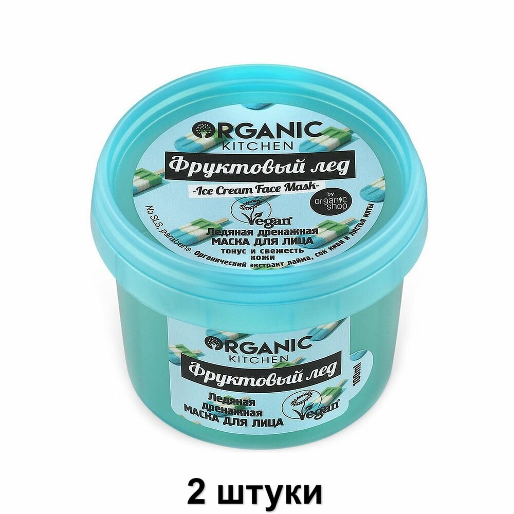 Organic Kitchen Маска для лица ледяная дренажная Фруктовый лед, 100 мл, 2 шт интересное: