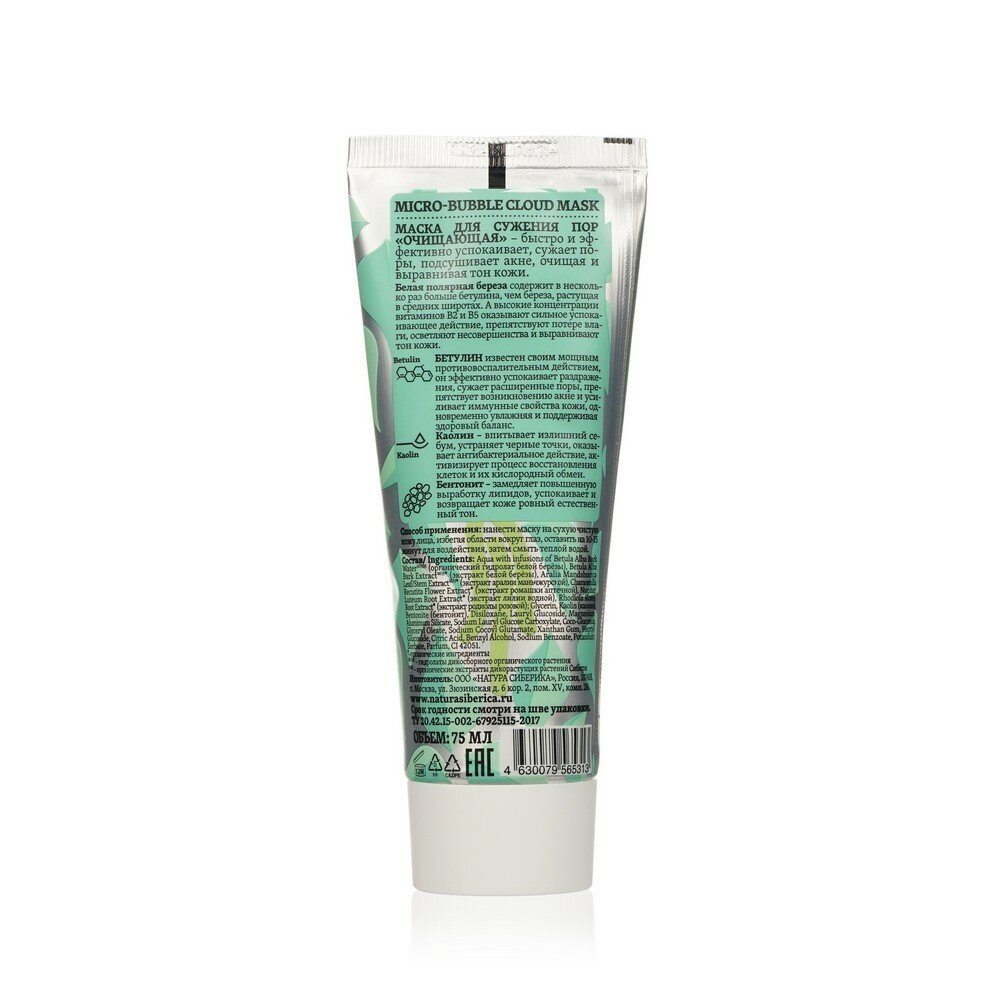 Natura Siberica Bereza Очищающая пузырьковая глиняная маска для сужения пор для проблемной кожи лица от черных точек и прыщей 75 мл