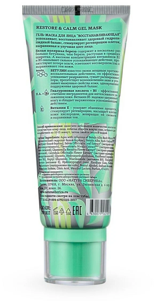 Гель-маска Natura Siberica Bereza Siberica "Восстанавливающая" для проблемной кожи лица, 100 мл