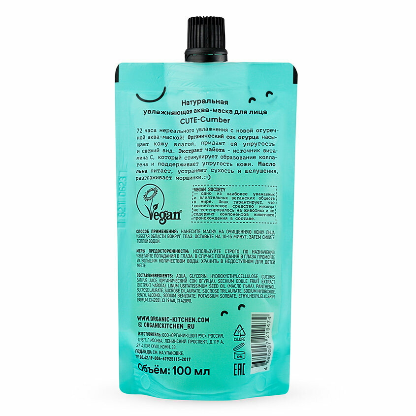 Купить Маска для лица Organic Kitchen Аква-маска увлажняющая, Cute-Cumber, 100 мл (4680007219474)