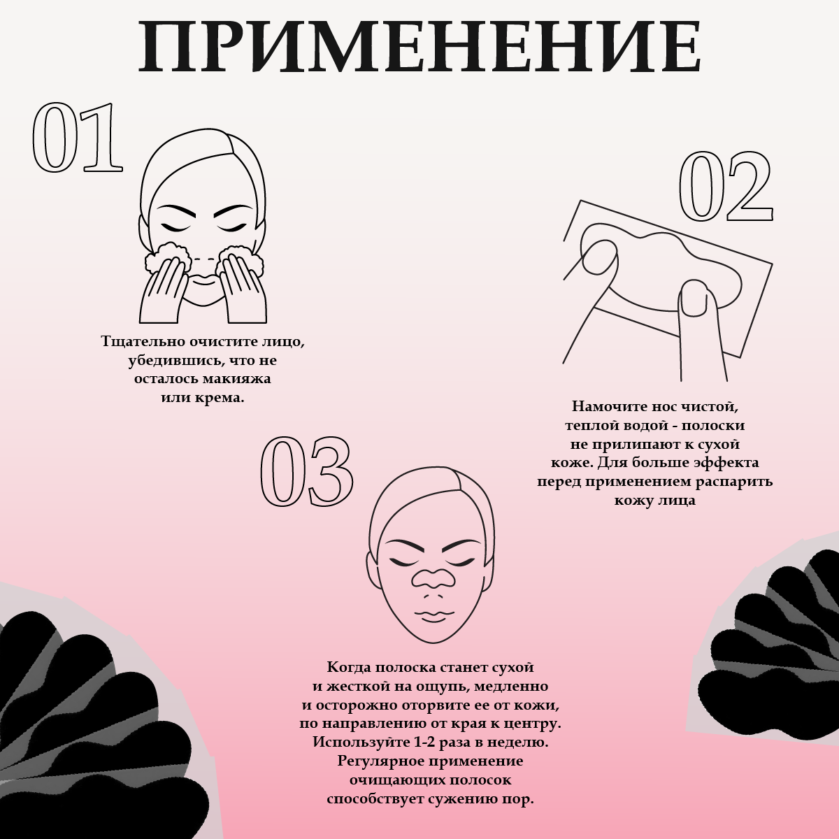 | Способ применения | Подержите полоску на носу в течение 10-15 минут. Осторожно удалите полоску, не делая резких движений от краев к центру. |