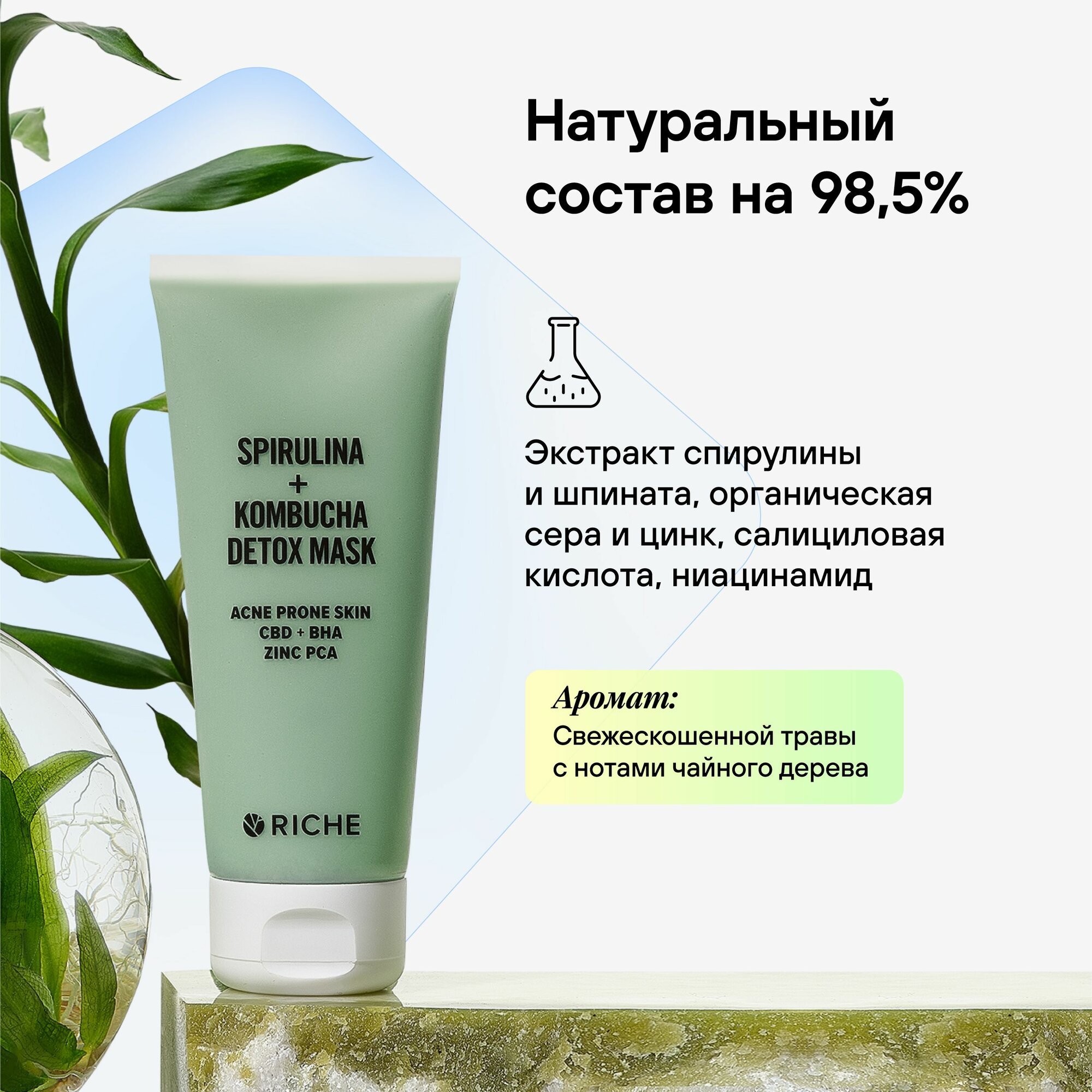 Купить Очищающая маска для лица от прыщей и черных точек RICHE Шпинат + Спирулина Рише