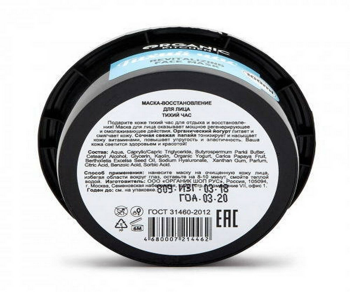 Organic kichen Маска-восстановление для лица Тихий час 100 мл интересное: