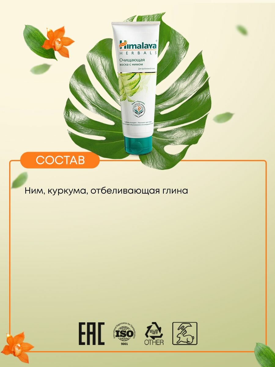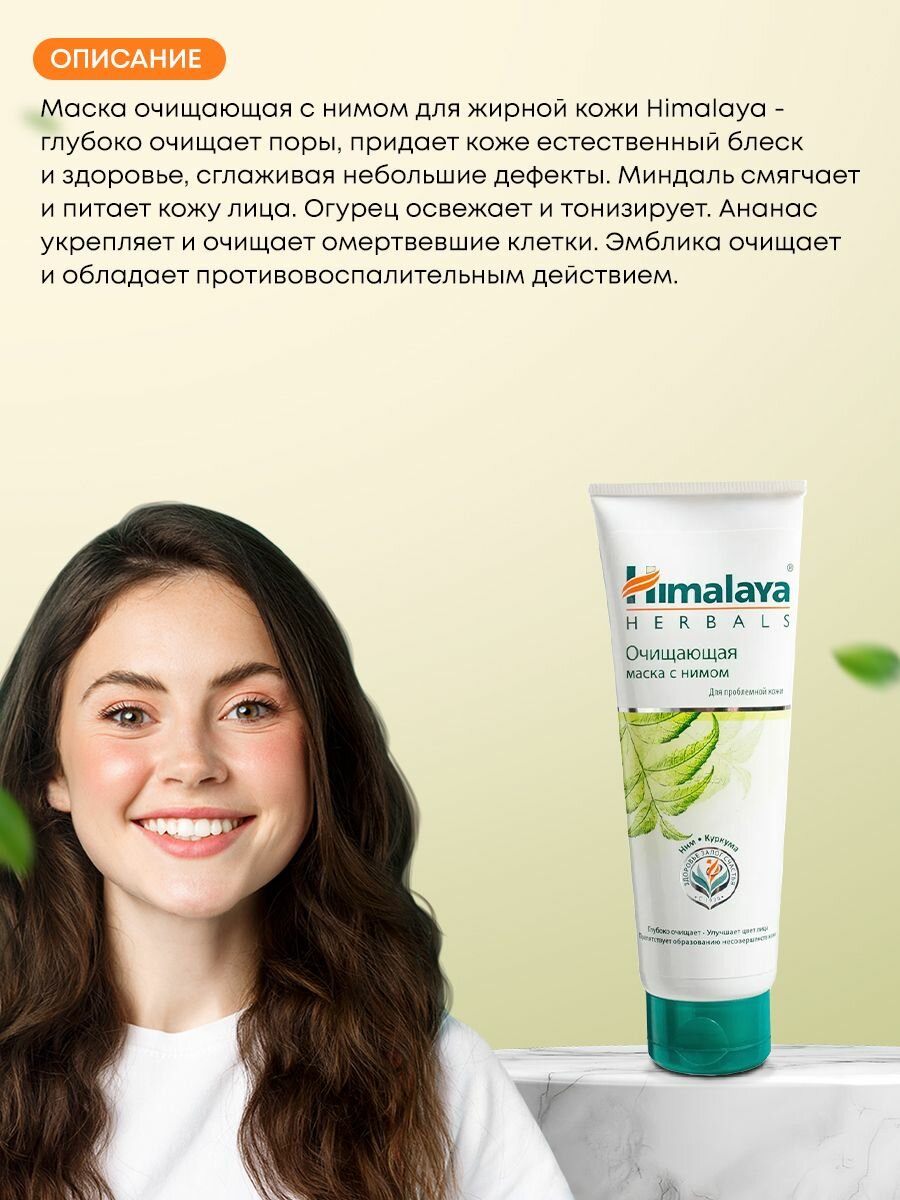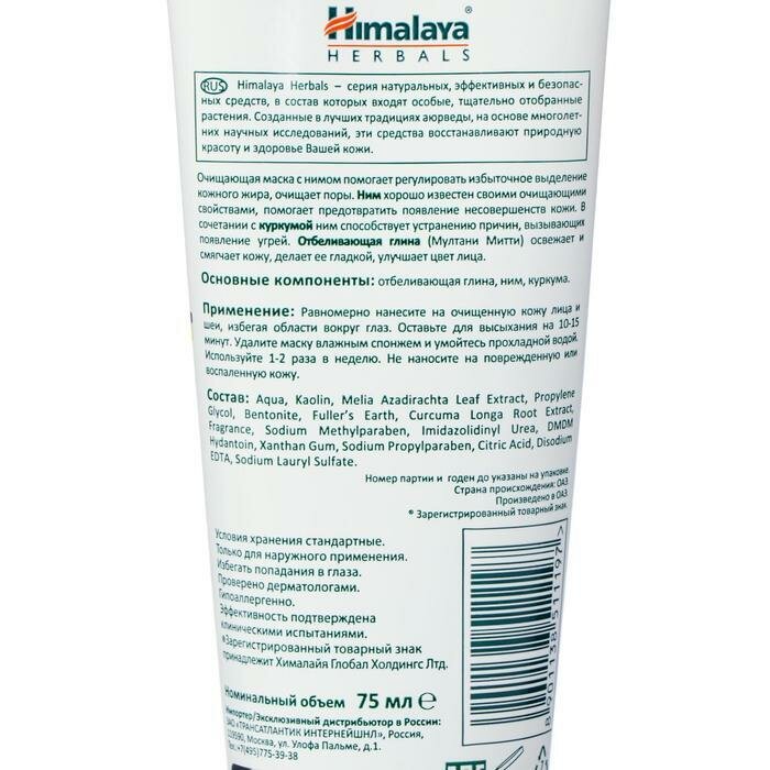 Маска для лица очищающая HIMALAYA Herbals с Нимом, для проблемной кожи, 75 мл