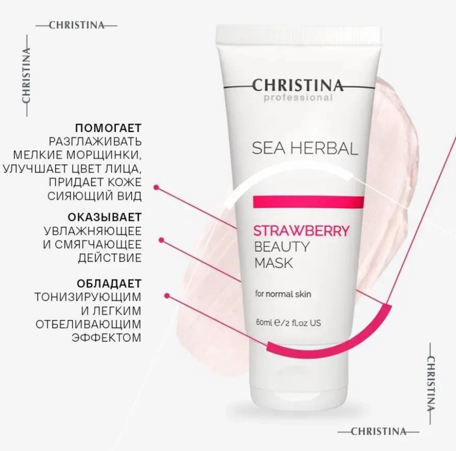 Christina – Маска красоты на основе морских трав для нормальной кожи «Клубника» Sea Herbal Beauty Mask Strawberry for normal skin, 60 мл интересное: