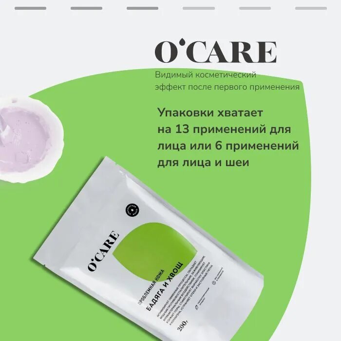 O'CARE Альгинатная маска для проблемной и жирной кожи лица от акне, прыщей и воспалений, 200 г интересное: