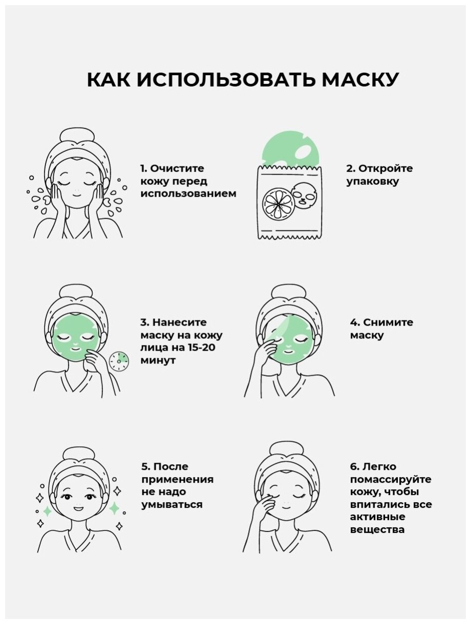 | Способ применения | Достаньте маску из индивидуальной упаковки, снимите с поддерживающей основы. Нанесите маску на очищенную кожу лица, оставьте на 15-20 минут. Аккуратно снимите маску и легко помассируйте, чтобы увлажняющая сыворотка впиталась. |