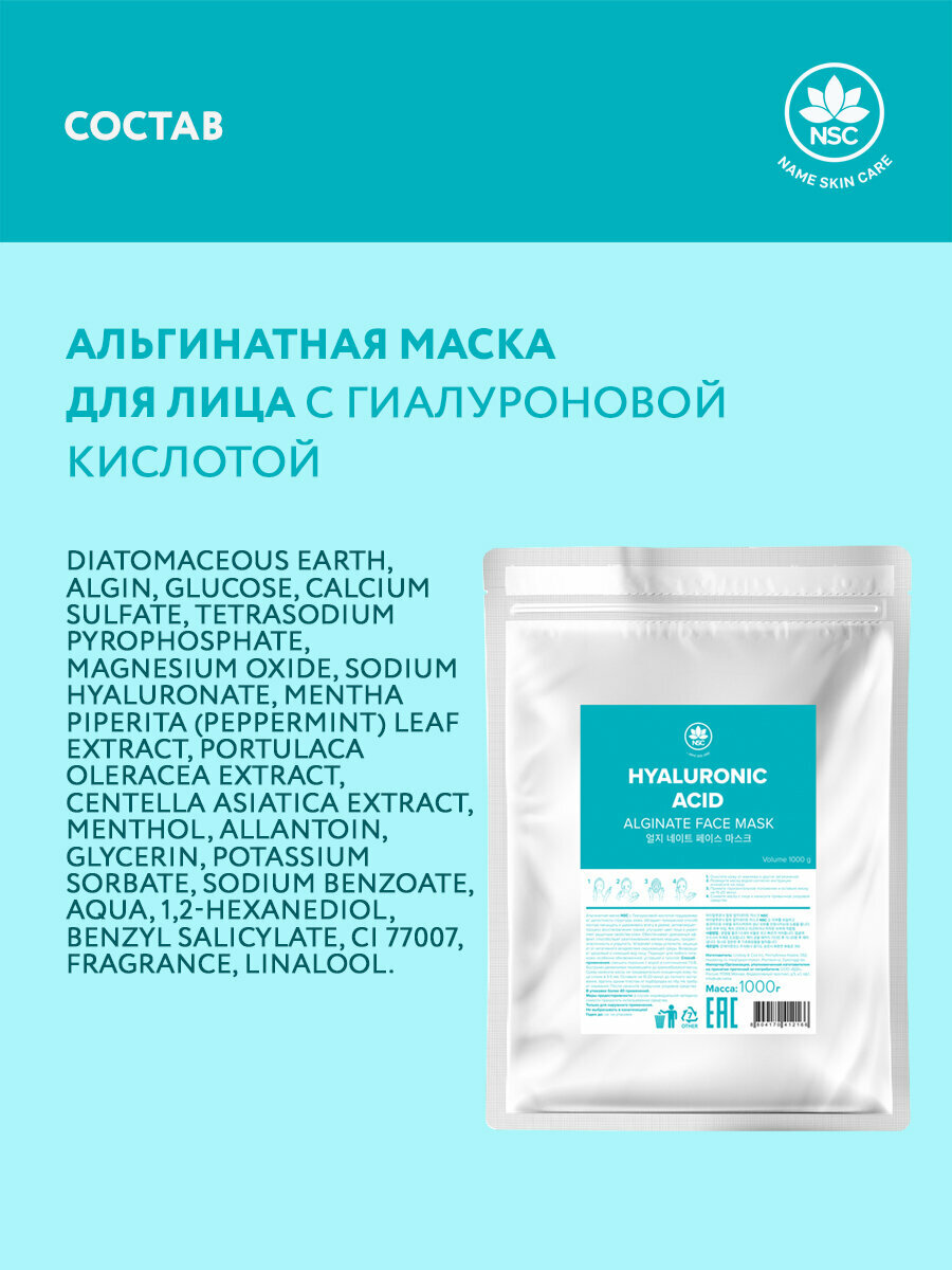 Name Skin Care маска альгинатная с гиалуроновой кислотой, 1000 гр. Корея интересное:
