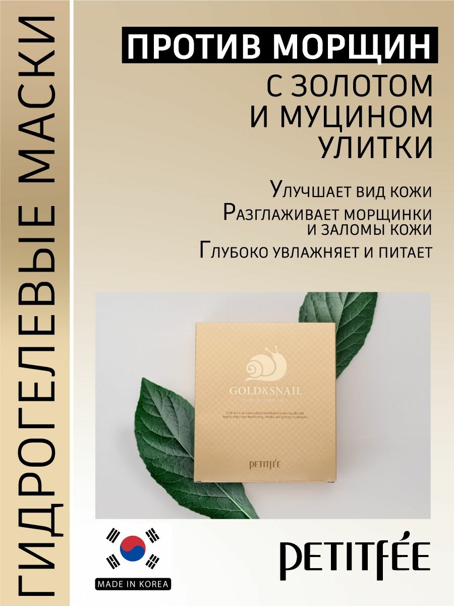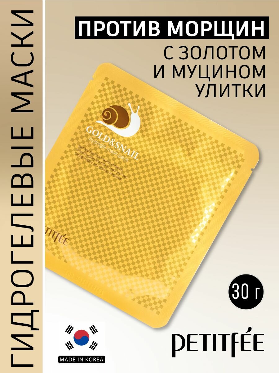 Petitfee Гидрогелевая маска для лица с золотом и экстрактом слизи улитки, 30 мл