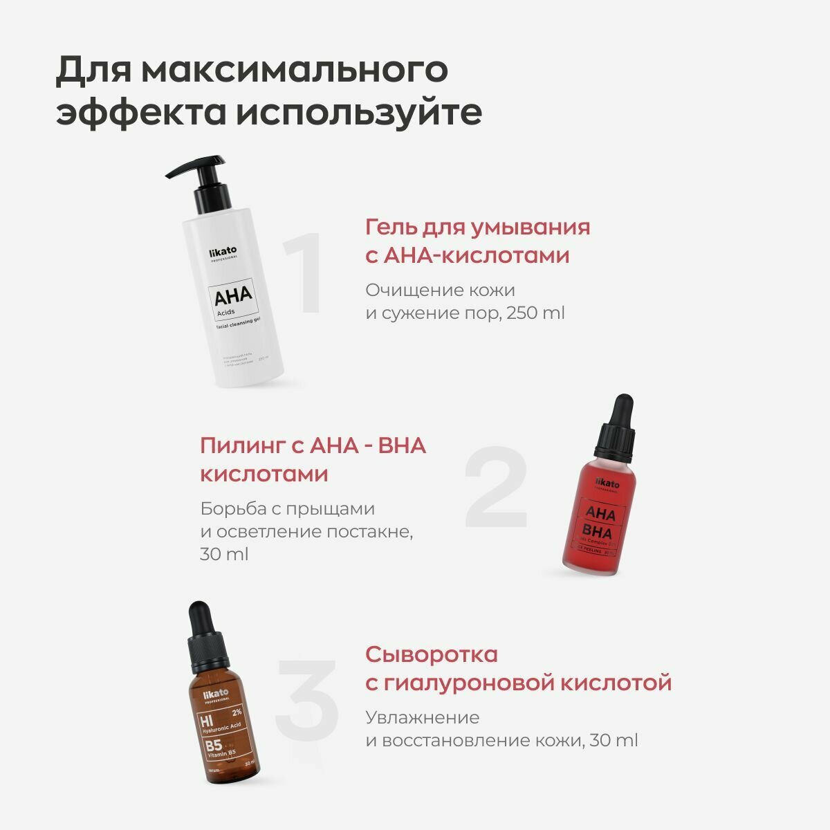 | Состав | Likato Мультикислотный пилинг для лица с AHA+BHA 30%, 30 мл |