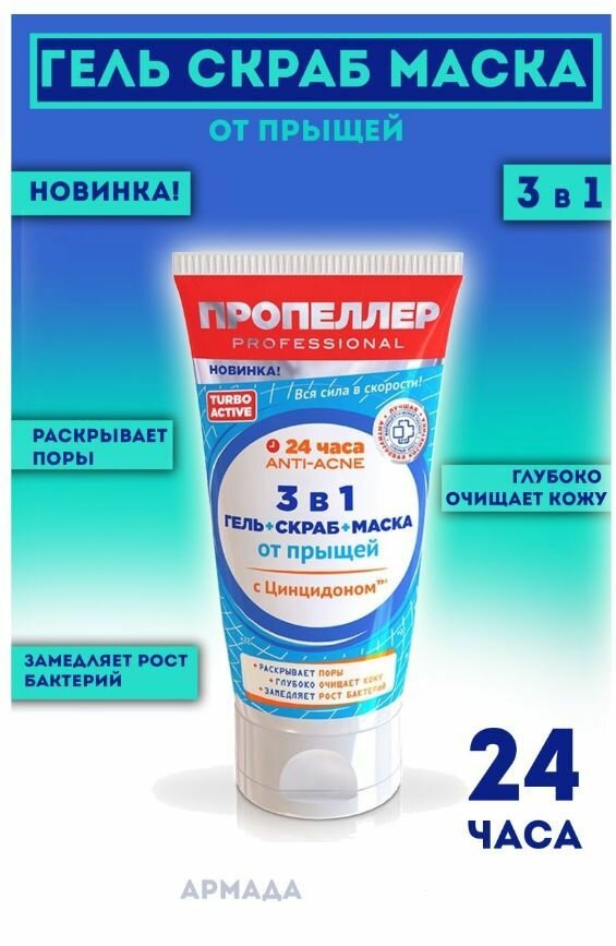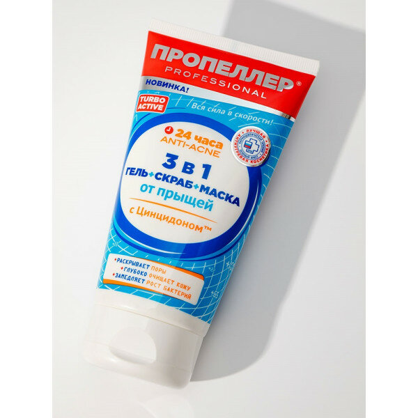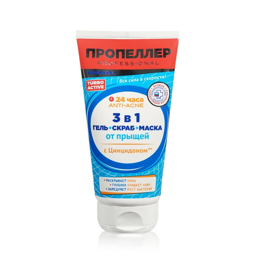 Средство от прыщей Пропеллер "Turbo-active", 3 в 1, гель-скраб-маска от прыщей, 150 мл (НП/ПР-3656) интересное: