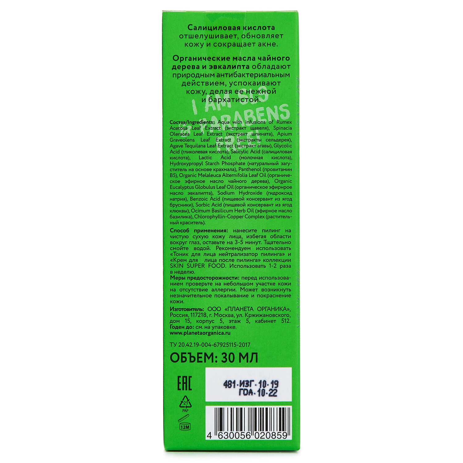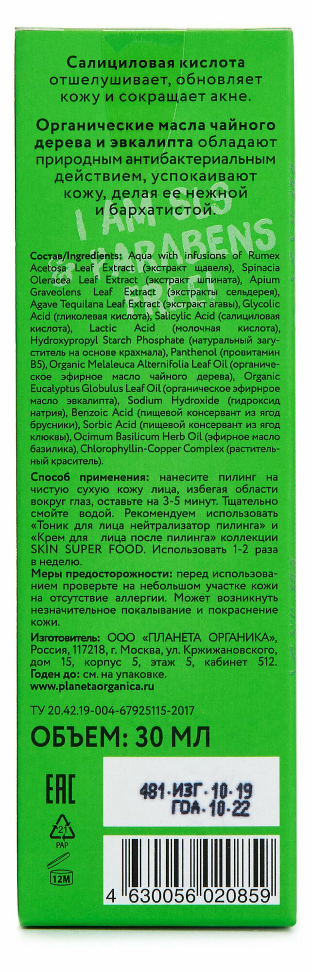 Пилинг для лица Planeta Organica Зеленый 30 мл интересное: