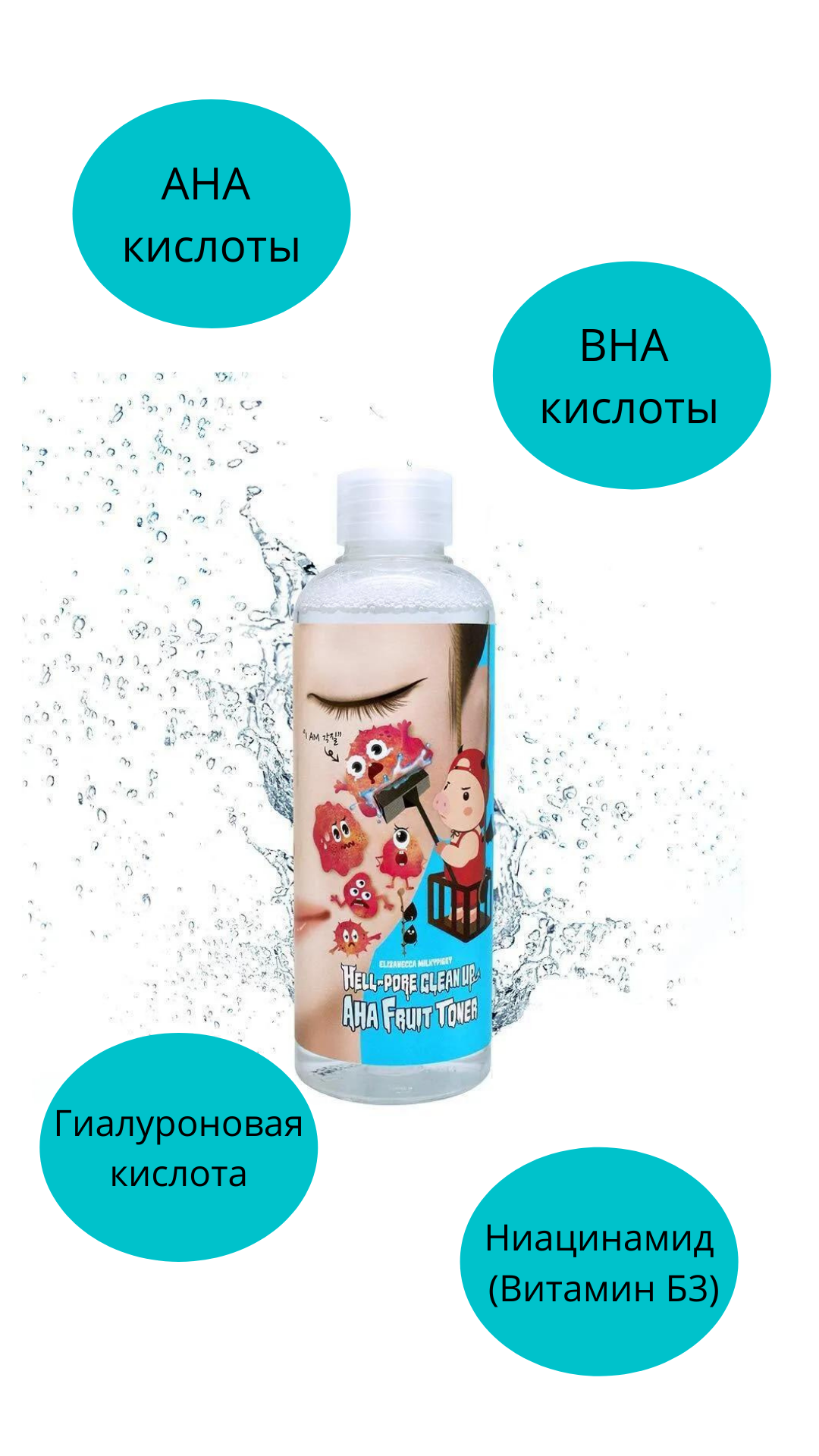 Тонер с фруктовыми кислотами | Elizavecca hell pore clean up aha fruit toner 200 ml