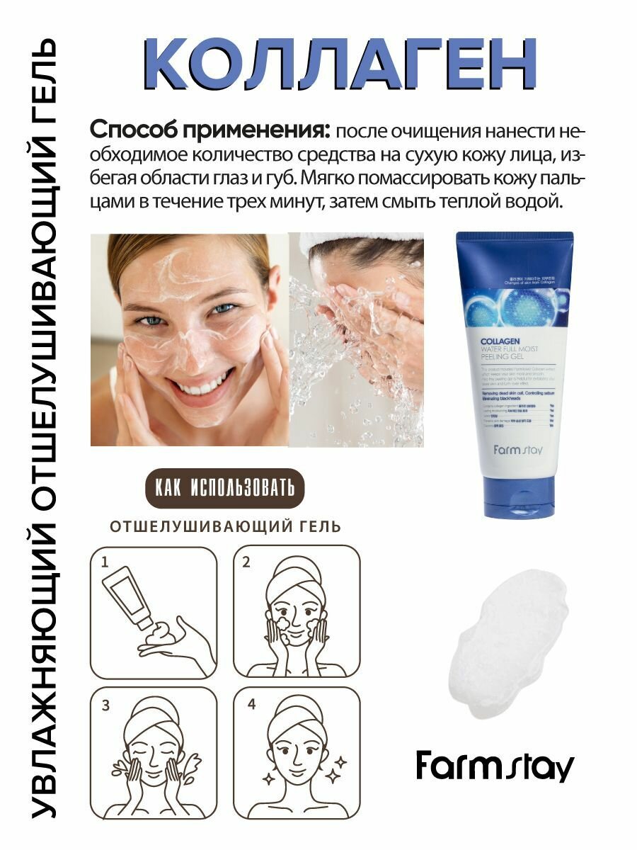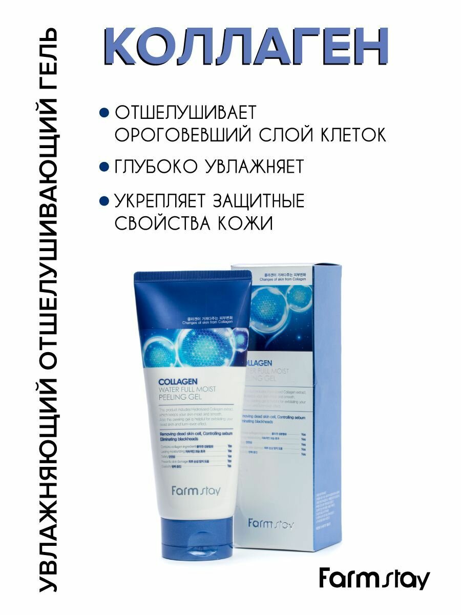 Пилинг FarmStay Collagen Water Full Moist Увлажняющий пилинг-гель с коллагеном, 180 мл