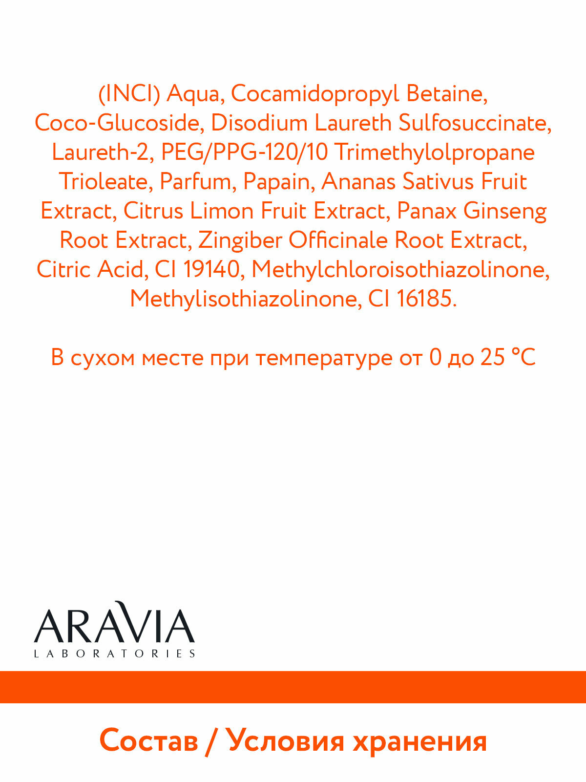 | Состав | Aqua, Cocamidopropyl Betaine, Coco-Glucoside, Disodium Laureth Sulfosuccinate, Laureth-2, PEG/PPG-120/10 Trimethylolpropane Trioleate, Parfum, Papain, Ananas Sativus Fruit Extract, Citrus Limon Fruit Extract, Panax Ginseng Root Extract, Zingiber Officinale Root Extract, Citric Acid, CI 19140, Methylchloroisothiazolinone, Methylisothiazolinone, CI 16185 |