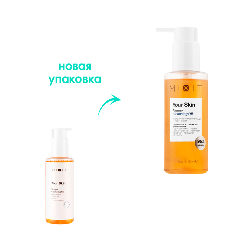 Купить MIXIT Гидрофильное гель-масло для умывания MIXIT Your Skin с маслом манго, авокадо и кокоса, 150 мл
