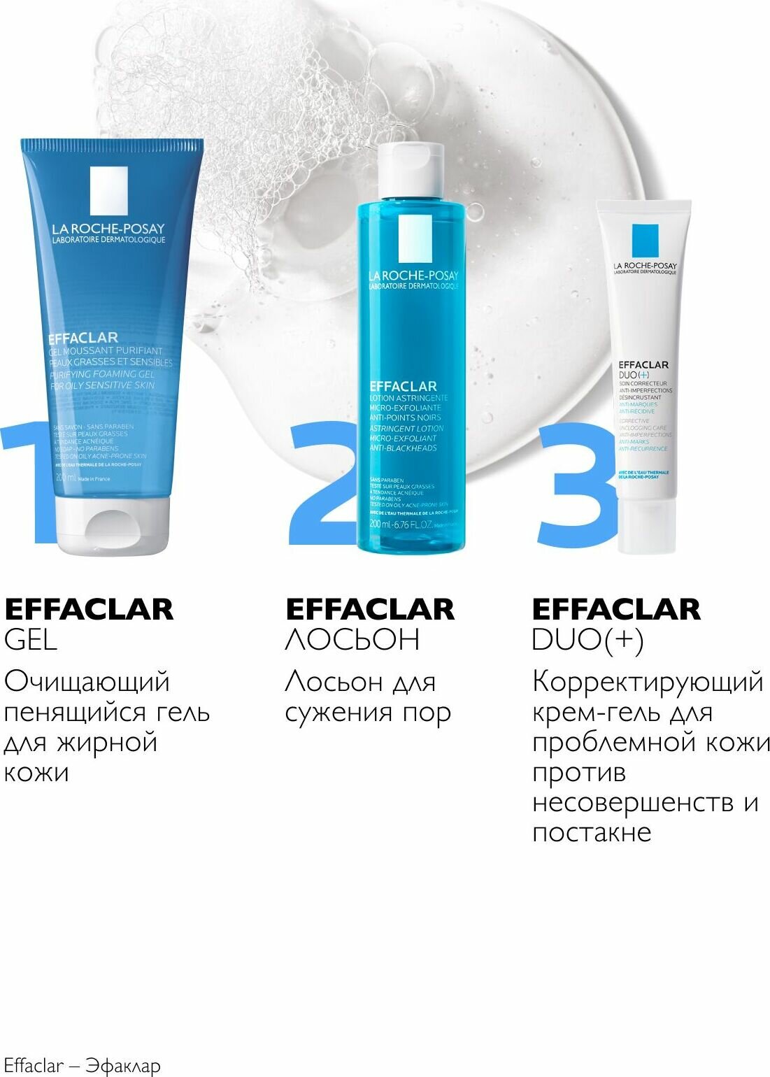 | Дополнительная информация | EFFACLAR Гель эффективно очищает кожу от загрязнений и избытков кожного сала, оставляя ее чистой и свежей. |