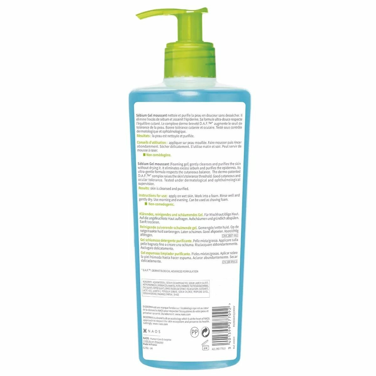 BIODERMA Sebium Гель для умывания жирной и проблемной кожи лица (помпа), 500 мл