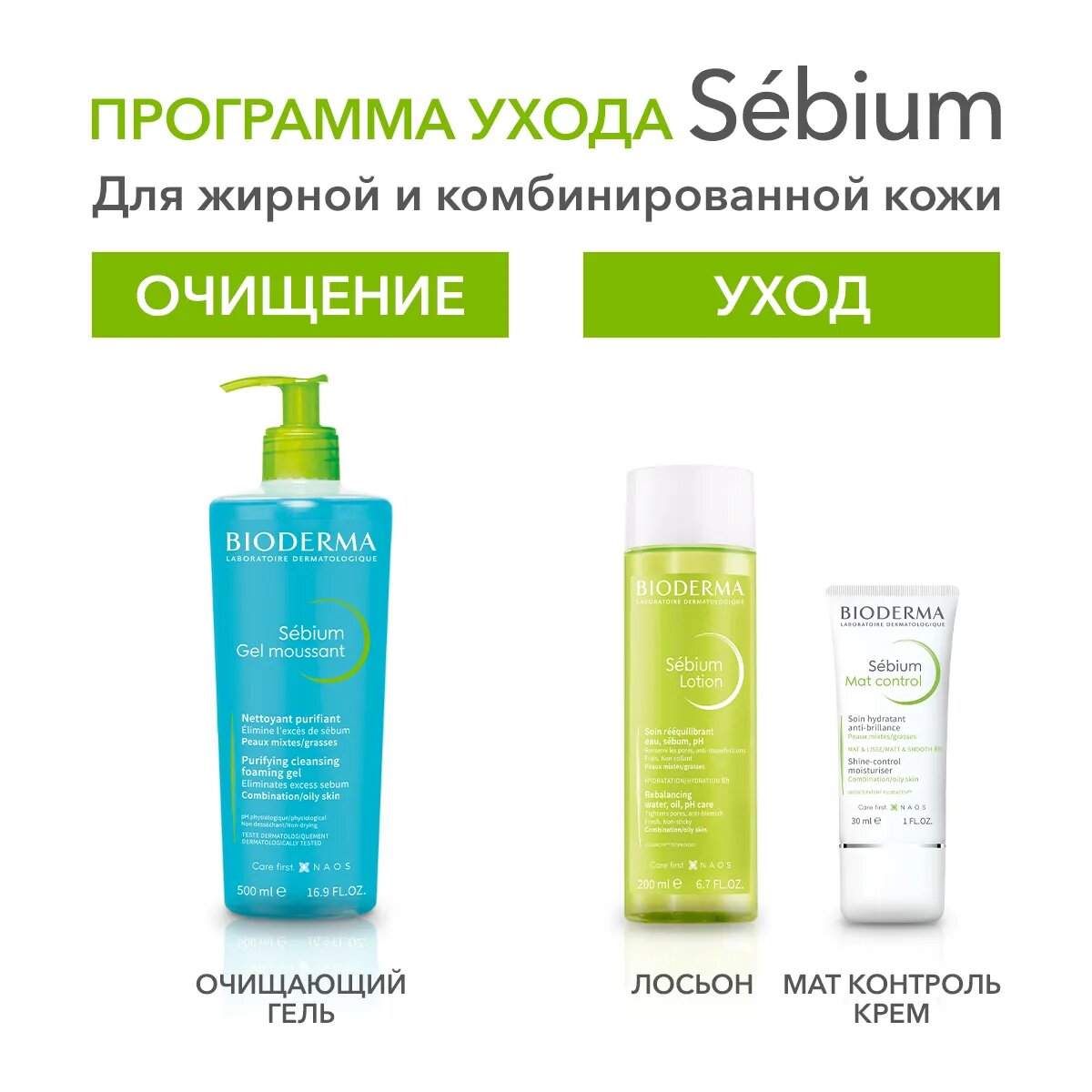 BIODERMA LABORATOIRE DERMATOLOGIQUE Себиум Гель для лица очищающий, 500 мл